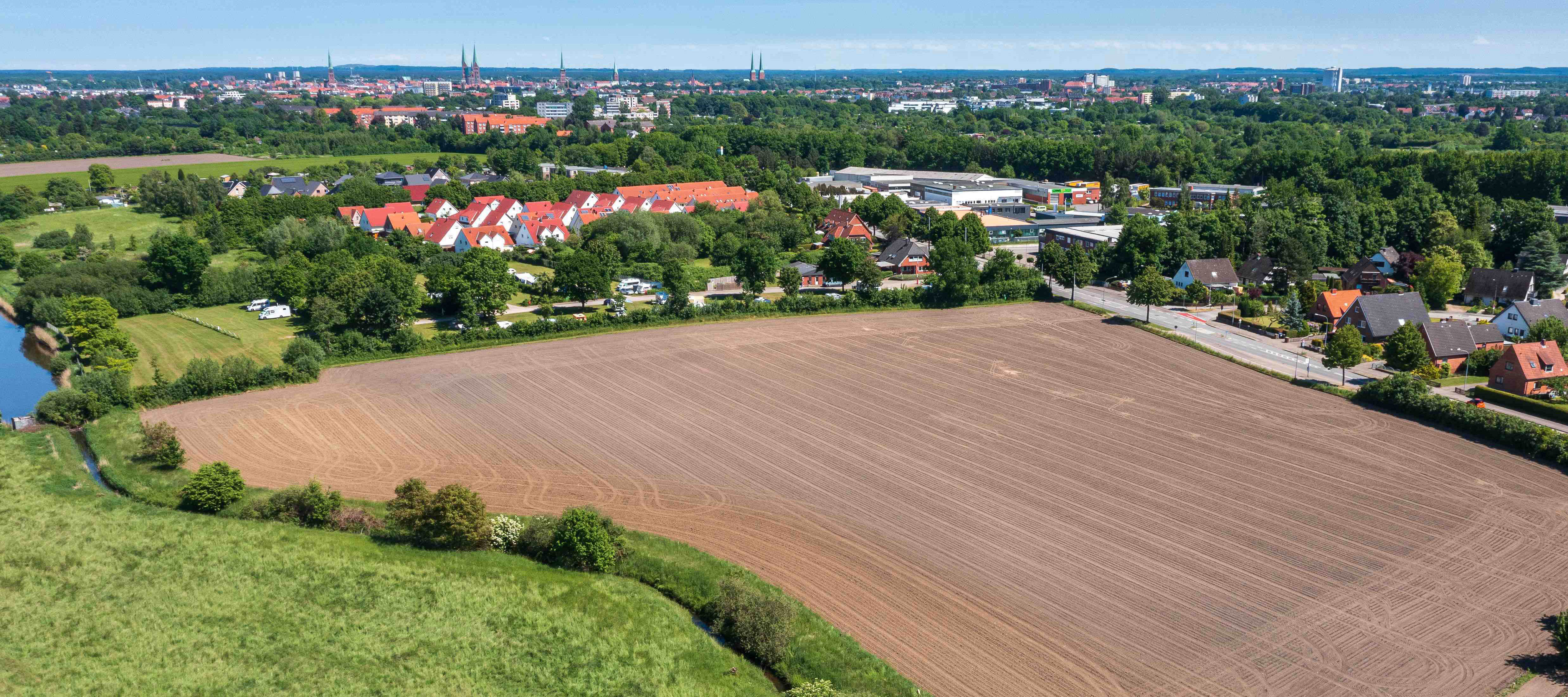Wir erschließen ein fast 45.000 m² großes Grundstück im Steinrader Damm in Lübeck.Es entstehen 34 Grundstücke zum Bau von Einfamilienhäusern und 12 Reihenhäusern zur Vermietung zu Bedingungen des 2. Förderweges.