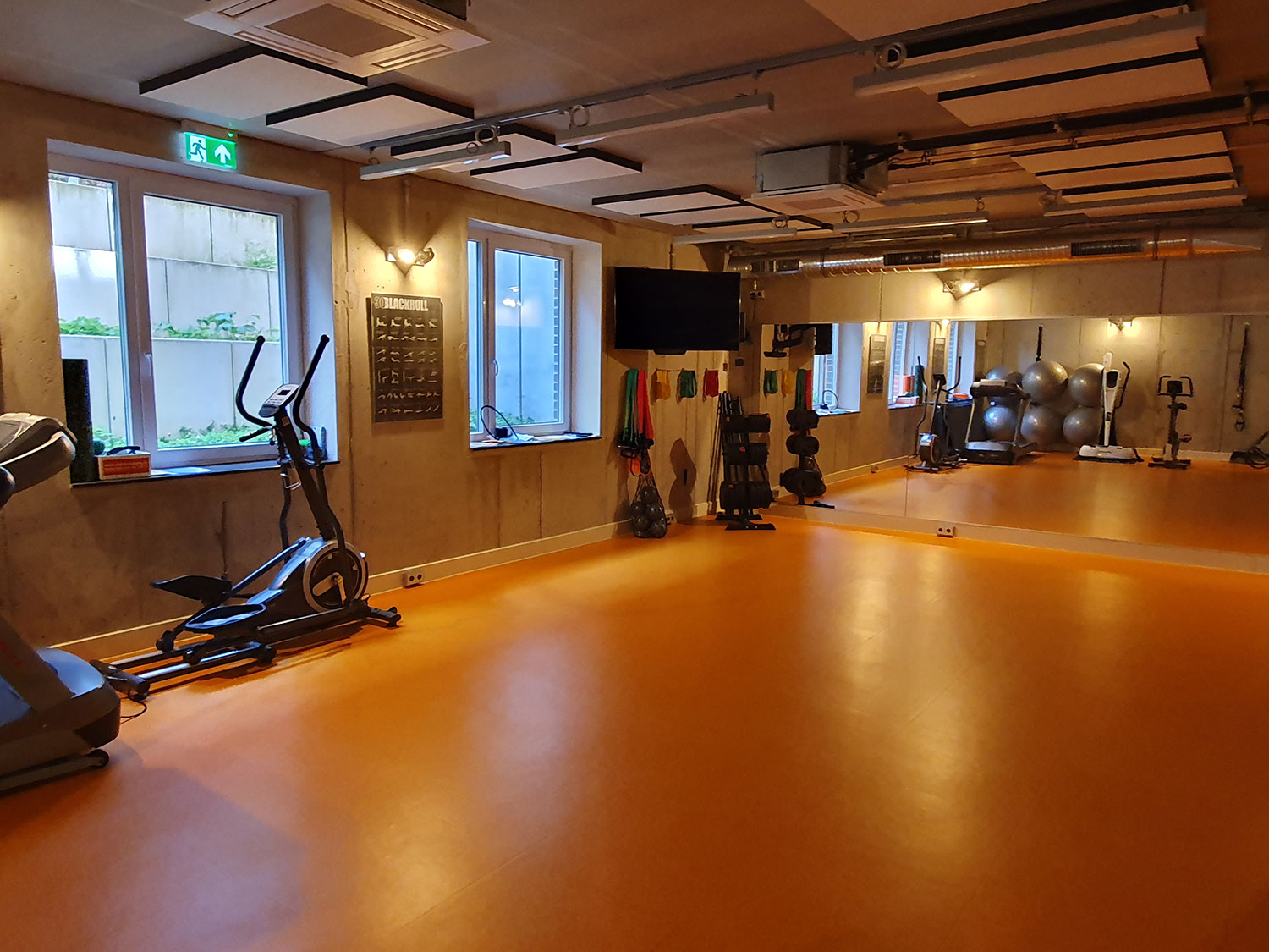 Mitarbeitende im Hauptgebäude können regelmäßig an der Aktiven Mittagspause teilnehmen oder den Fitnessraum nach der Arbeitszeit nutzen.